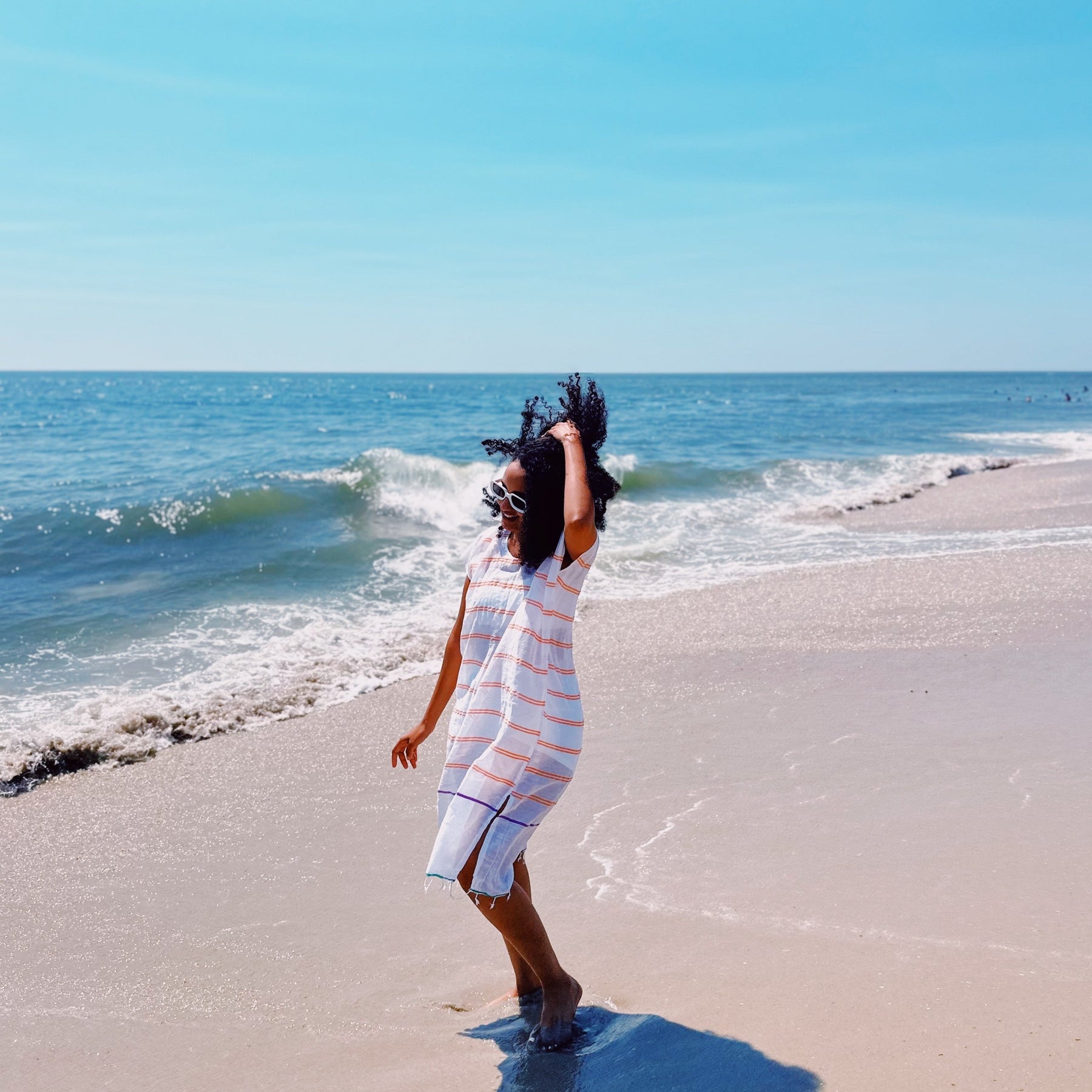 This is a lovely cotton dress with orange stripes. It is ideal for any summer day, as it is light and colorful. The dress is handmade and woven by talented artisans, using traditional techniques to create a unique and high-quality piece. With this dress, you can look cheerful and fashionable while supporting ethical fashion and skilled artisans.